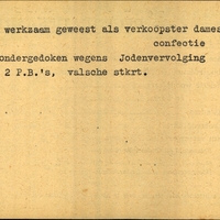 Achterkant bijzonderheden: 2 P.B.'s, valsche stkrt. - Achterkant beroep: verkoopster damesconfectie