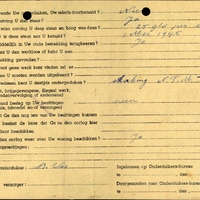 Bijzondere opmerkingen: Toekomstig adres: Drachten, Oude weg 248 - - P.B.: alleen beroep is gewijzigd. Stamkaarten: beroep gewijzigd. - Geen salaris gedurende het onderduiken. Steun tot 1 Mei 1945: 25 gld per week. Kan onmiddellijk terugkeren in oude betrekking. - Onderduiken: later thuis