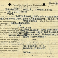 Onderduikregistratie van Charlotte Wolf