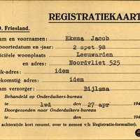 Onderduikregistratie van Jacob Ekema