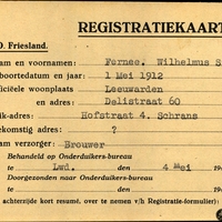 Onderduikregistratie van Wilhelmus Simon Fernee