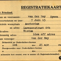 Onderduikregistratie van Symen van der Wey