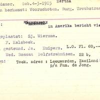 Bijzonderheden - - Financieel gesteund. Ja. Kuipers. L.O. Fl. 60,-- p.mnd. - Toek. adres: Leeuwarden, Zaailand 96 - p/a Fam. de Jong.