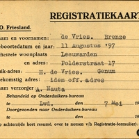 Onderduikregistratie van Brenze de Vries