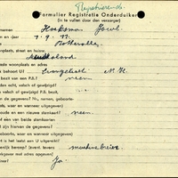 Onderduikregistratie van Jacob Hoeksma