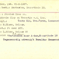 Bijzonderheden: Bijzonderheden: vertrokken naar A-dam, Mozartkade 18 op 12-6-1945. Tegenwoordig adres; p/a Buwalda-Eemswoude.