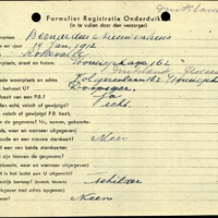 Onderduikregistratie van Bernardus Nieuwenhuis