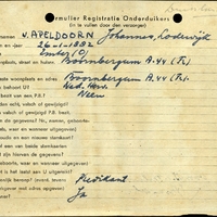 Onderduikregistratie van Johannes Lodewijk v. Apeldoorn