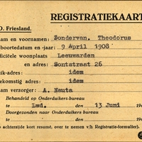 Onderduikregistratie van Theodorus Zondervan