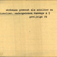 Achterkant beroep: werkzaam geweest als schilder en winkelier
