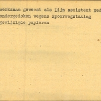 Achterkant bijzonderheden: Ondergedoken wegens spoorwegstaking - Achterkant beroep: Lijn assistent - Achterkant naam werkgever: Ned. Sp.