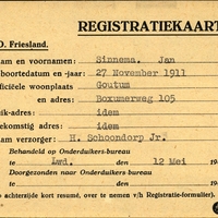 Onderduikregistratie van Jan Sinnema