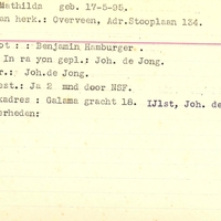 Onderduikregistratie van Mathilda de Beer