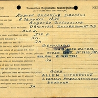 Bijzondere opmerkingen: 20 October 1944 naar het HvB Leeuwarden (lag wegens ischias te bed) na 8 dagen ontslagen