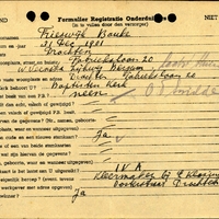 Onderduikregistratie van Bauke Frieswijk