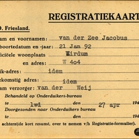 Onderduikregistratie van Jacobus van der Zee