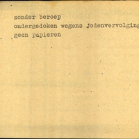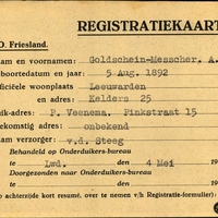 Achterkant bijzonderheden: Duik-adres: P. Veenema - - Behandeld op Onderduikers-bureau te Lwd. den 4 Mei 1945 - Achterkant beroep: zonder beroep