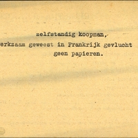 Achterkant bijzonderheden: Werkzaam geweest in Frankrijk gevlucht. - Achterkant beroep: zelfstandig koopman