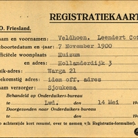 Onderduikregistratie van Leendert Cornelis Veldhoen