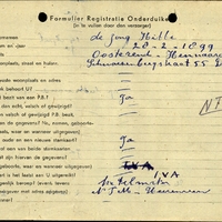 Onderduikregistratie van Hibbe de Jong