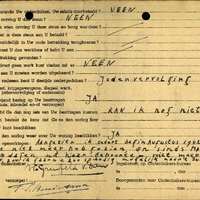 Bijzondere opmerkingen: P.B.: Naam gewijzigd in Bergmans Wilhelmina. gehuwd met Grunfeld.Vijand heeft bezittingen in beslag genomen. - Bijz. opm.: Aangezien ik sedert augustus 1942 mijn familie niet meer heb gezien en sinds maart 1943- d.w.z. 14 dagen na haar geboorte niet meer mijn dochter, zou ik gaarne zoo spoedig mogelijk naar 't zuiden vertrekken.