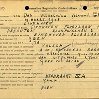 Onderduikregistratie van Wilhelmina van Dam