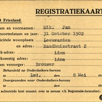 Onderduikregistratie van Jan Mik