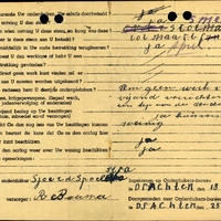 Bijzondere opmerkingen: Reden onderduiken: Om geen werk voor de vijand te verrichten kregen een tip van de ondergrondsche.