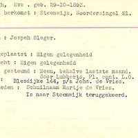Bijzonderheden: Schuilnaam: Martje de Vries. Is naar Steenwijk teruggekeerd. Financieel gesteund: Neen, behalve de laatste maand door Lubberts, Pl. cont. L.O.