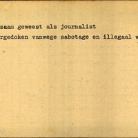 Achterkant bijzonderheden: Ondergedoken wegens sabotage en illegaal werk. - Achterkant beroep: Journalist