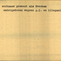 Achterkant bijzonderheden: ondergedoken wegens A.I. en illegaal werk - Achterkant beroep: voerman