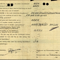 Bijzondere opmerkingen: Toekomstig adres: Drachten - - P.B.: Dit is mij in Smilde afgenomen. A.I. Smilde. In bezit van een oude en nieuwe stamkaart. - Kostwinner. Geen salaris of steun ontvangen gedurende het onderduiken. In oude betrekking terugkeren: Zoo dra er weer gebakt wordt. Ik doe van alles. - Geen beslag gelegd op bezittingen door de vijand.