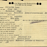 Onderduikregistratie van Teake Viersma