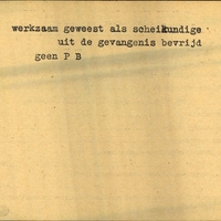 Achterkant bijzonderheden: uit de gevangenis bevrijd - Achterkant beroep: scheikundige