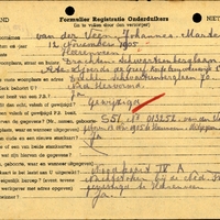 Onderduikregistratie van Johannes Marten van der Veen