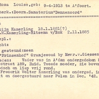 Onderduikregistratie van Rosa Louise Kamerling