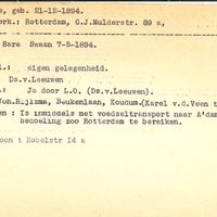 Bijzonderheden: Bijzonderheden: Is inmiddels met voedseltransport naar A'dam gegaan, met bedoeling zoo Rotterdam te bereiken. Woont Nobelstr 14 a. Financieel gesteund door L.O. (Ds. v. Leeuwen) Duikadres tussen haakjes Karel v.d. Veen te Koudum B.13