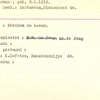 Onderduikregistratie van Johanna Ruijg