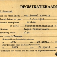 Onderduikregistratie van Antonie van Bommel
