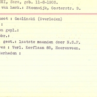 Onderduikregistratie van Sara Goslinski