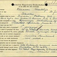 Onderduikregistratie van Matthijs Klaassen