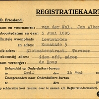 Onderduikregistratie van Jan Albertus van der Wal