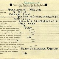 Onderduikregistratie van Willem Verschoor