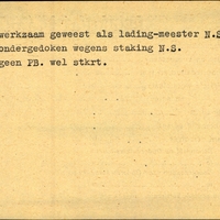 Achterkant bijzonderheden: Duik-adres: S. de Groot. Warga - - Toekomstig adres: idem off. adres - Behandeld op Onderduikers-bureau te Lwd. den 3 Mei 1945. - geen PB. wel stkrt. - Achterkant beroep: werkzaam geweest als lading-meester N.S.
