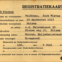 Onderduikregistratie van Jaob Wietse Veldkamp