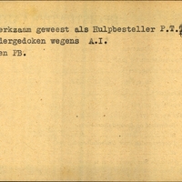 Achterkant beroep: Hulpbesteller - Achterkant naam werkgever: P.T.T.