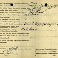 Bijzondere opmerkingen: Arbeidsinzet - Geen stamkaarten. - - Geen salaris uitbetaald gedurende het onderduiken. Steun sinds 1 Januari 1945 via W. Vis: f110,- tot 1 Mei 1945. - met potlood bijgeschreven Utrecht.