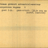 Achterkant bijzonderheden: Reden onderduiken ? - Achterkant beroep: automobielmonteur