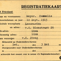 Onderduikregistratie van Cornelis Meyer