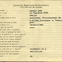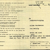Bijzondere opmerkingen: Laatst uitgereikte bonkaart: Noodkaart IV A Alle bezittingen zijn verloren op een weinig na. Kunnen na de oorlog niet meer over woning beschikken. Ontving van een onbekende steun over de maanden Juni en Juli '44 n.l. f. 180,- per maand.